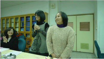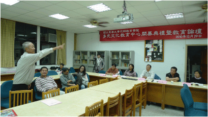 左至右廉兮老師、主持人林慧絢老師、回應人理新的母親,哈魯蔚‧里新。理新媽媽:女兒說我一定要來看,因為是跟爸爸工作有關的,所以我就來