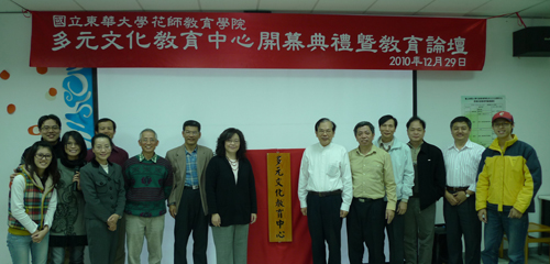 國立東華大學多元文化教育中心於 開幕當天許多師長到場致意。首先,吳家瑩院長勉勵大家,在傳承上,中心墊基在過去多元所良好基礎上,期許大家未來更有前瞻性及開創性。陳添球副院長更指出一般學校的中心都是教育部設的,而多元文化中心卻是多 中心主任廉兮表示,雖然多元文化教育不再以獨立所的形式發展,但是多元文化教育的學術研究精神與參與社會革新的行動,才正要凝聚與擴散。面對大學系所體制的變遷,多 接下來的重頭戲是由多元所學生組成的多多劇團的首演,演出了「花蓮人的一天」行動劇,表達花蓮人重視「蘇花改」、「教育優先區」、「營養午餐通通有獎?」等議題。 緊接著舉辦教育論壇,並邀請長年參與台灣草根民主運動的身心障礙、工傷與國際移民家庭等人民團體以及原住民青年進行對話,擴展教育工作的社會多元與差異的視野。討論的主題包含:東南亞新移民姊妹與台商家庭的移動經驗、移民教育工作者如何看待社會移動與自身關係、與原住民知識青年對國家制度的看法。討論主題包含「對部落的重新理解」以及「看見家的不同樣貌」。 當晚中心舉辦「工人轟拍」紀錄片座談。在我們的社會中,有一群勞工拿起攝影機,為自己的家庭及工作留下記錄,呈現了他(她)們自己的故事!多元所學生陳淑娟、理新哈魯蔚也擔任與談人,場中除了東華學生參與外,也來了幾位家長包括在花蓮擔任卡車司機的李孟純父親及叔叔,媽媽,理新媽媽等,深刻的對話留給大家極為深刻的印象,也對卡車司機及隧道工人的工作處境,有更進一步的瞭解。 |